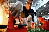 Международная архитектурно-строительная и интерьерная выставка "Красивые дома. Российский архитектурный салон" в МВЦ "Крокус Экспо". Жанровая фотография. Стенд станков для резьбы по дереву.