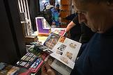 Международная архитектурно-строительная и интерьерная выставка "Красивые дома. Российский архитектурный салон" в МВЦ "Крокус Экспо". Жанровая фотография. Стенд с литературой по строительству и дизайну.