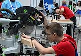 Финал объединенного национального чемпионата профессионального мастерства для людей с инвалидностью и ограниченными возможностями здоровья "Абилимпикс" в Гостином дворе. Участник финала во время соревнований по столярному мастерству.