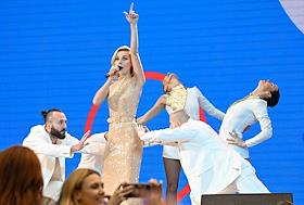 Финал объединенного национального чемпионата профессионального мастерства для людей с инвалидностью и ограниченными возможностями здоровья "Абилимпикс" в Гостином дворе. Певица Полина Гагарина во время выступления на финале.