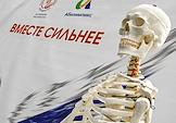 Финал объединенного национального чемпионата профессионального мастерства для людей с инвалидностью и ограниченными возможностями здоровья "Абилимпикс" в Гостином дворе. Жанровая фотография. Скелет человека и надпись "Вместе сильнее".