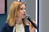Финал объединенного национального чемпионата профессионального мастерства для людей с инвалидностью и ограниченными возможностями здоровья "Абилимпикс" в Гостином дворе. Директор Государственного бюджетного профессионального образовательного учреждения города Москвы "Технологический колледж 21" Наталья Цегельная во время пленарного заседания.