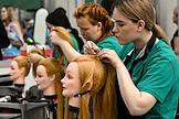 Финал объединенного национального чемпионата профессионального мастерства для людей с инвалидностью и ограниченными возможностями здоровья "Абилимпикс" в Гостином дворе. Участники финала во время соревнований по парикмахерскому мастерству.