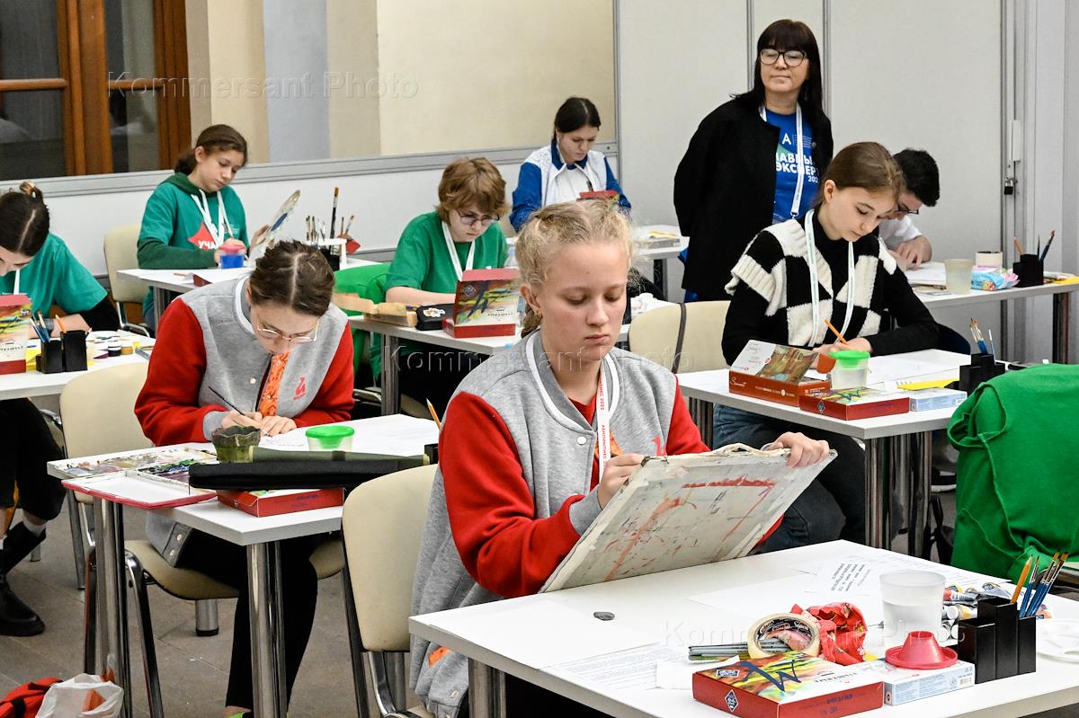Финал объединенного национального чемпионата профессионального мастерства для людей с инвалидностью и ограниченными возможностями здоровья "Абилимпикс" в Гостином дворе. Участники финала во время соревнований по дизайну.