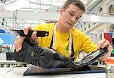 Финал объединенного национального чемпионата профессионального мастерства для людей с инвалидностью и ограниченными возможностями здоровья "Абилимпикс" в Гостином дворе. Участник финала во время соревнований по обувному мастерству.