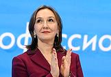 Финал объединенного национального чемпионата профессионального мастерства для людей с инвалидностью и ограниченными возможностями здоровья "Абилимпикс" в Гостином дворе. Исполняющая обязанности ректора ФГБОУ ДПО "Институт развития профессионального образования" Наталия Золотарева во время пленарного заседания.