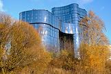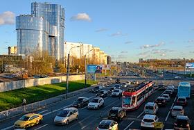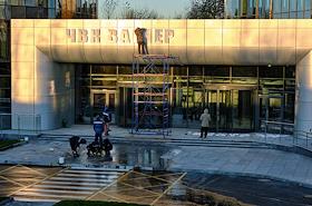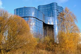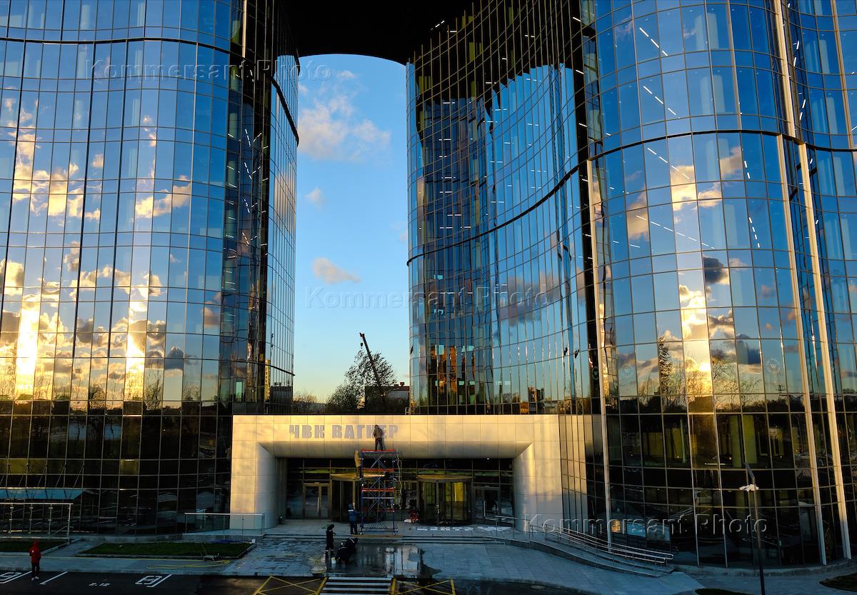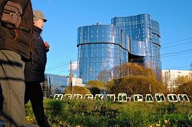 Views of St. Petersburg. The building of the business center "PMC Wagner Center" at the crossroads of Dalnevostochny Avenue and Zolnaya Street.
