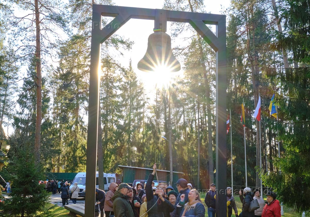 День памяти жертв политических репрессий на Левашовском мемориальном кладбище (Левашовская пустошь). Люлди бьют в колокол на кладбище.