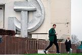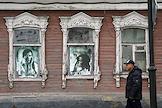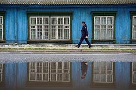 Виды Коломны. Жанровая фотография. Военнослужащий на фоне старого дома.