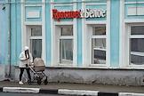 Виды Коломны. Жанровая фотография. Женщина с коляской идет мимо магазина "Красное & Белое".
