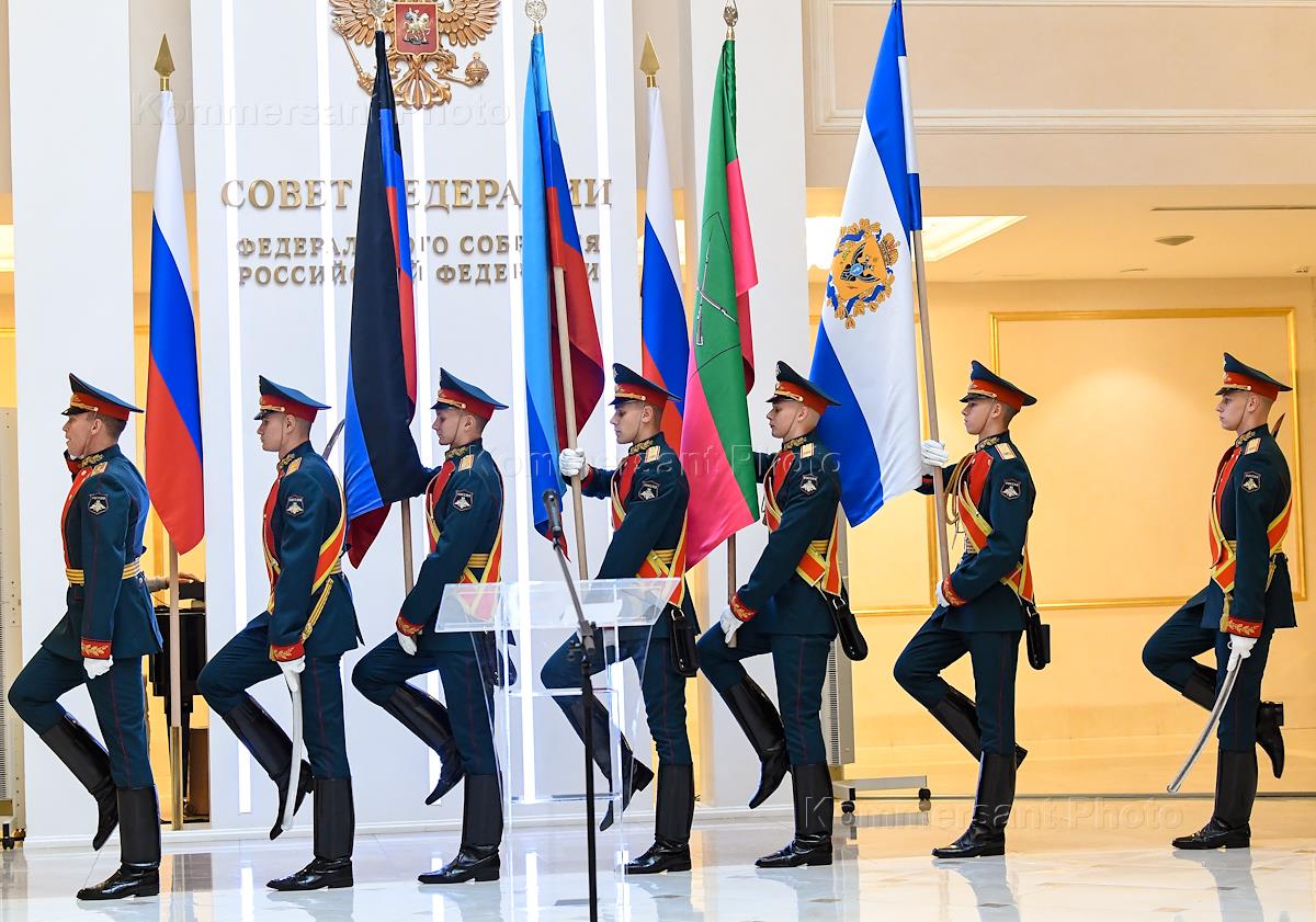 Церемония установки флагов Донецкой и Луганской Народных Республик, Запорожской и Херсонской областей на Аллее флагов субъектов Российской Федерации в Совете Федерации (СФ) России.