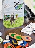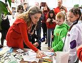 Церемония передачи тысячи шевронов для военнослужащих, созданных по эскизам детей в рамках конкурса "Отважным и важным", в Общероссийском народном фронте (ОНФ). Жанровая фотография. Эскизы шевронов.