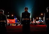 Церемония открытия стелы "Новосибирск – Город трудовой доблести" на площади Калинина. Мемориал призван увековечить трудовой подвиг горожан в годы Великой Отечественной войны. Жанровая фотография. Военнослужащий роты почетного караула во время церемонии.