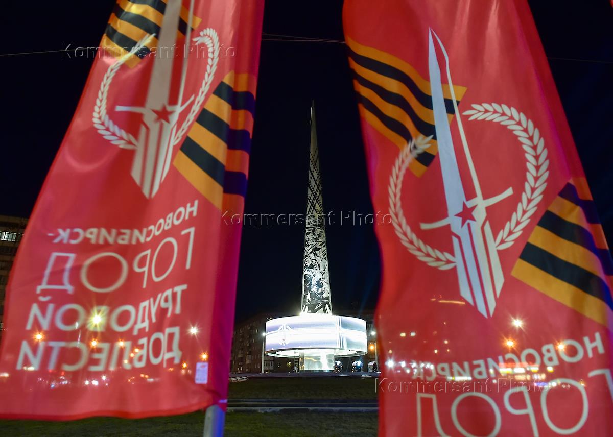 Церемония открытия стелы "Новосибирск – Город трудовой доблести" на площади Калинина. Мемориал призван увековечить трудовой подвиг горожан в годы Великой Отечественной войны.