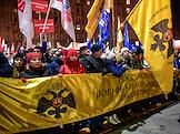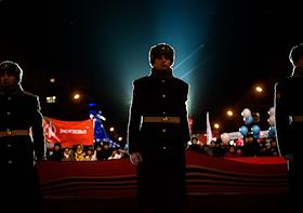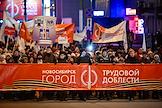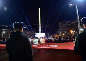 Церемония открытия стелы "Новосибирск – Город трудовой доблести" на площади Калинина. Мемориал призван увековечить трудовой подвиг горожан в годы Великой Отечественной войны. Жанровая фотография.