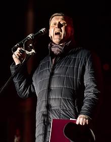 Церемония открытия стелы "Новосибирск – Город трудовой доблести" на площади Калинина. Мемориал призван увековечить трудовой подвиг горожан в годы Великой Отечественной войны. Мэр Новосибирска Анатолий Локоть во время церемонии.