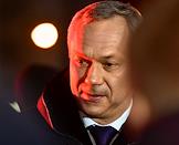 Церемония открытия стелы "Новосибирск – Город трудовой доблести" на площади Калинина. Мемориал призван увековечить трудовой подвиг горожан в годы Великой Отечественной войны. Губернатор Новосибирской области Андрей Травников во время церемонии.