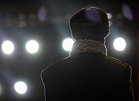 Церемония открытия стелы "Новосибирск – Город трудовой доблести" на площади Калинина. Мемориал призван увековечить трудовой подвиг горожан в годы Великой Отечественной войны. Жанровая фотография. Военнослужащий роты почетного караула во время церемонии.