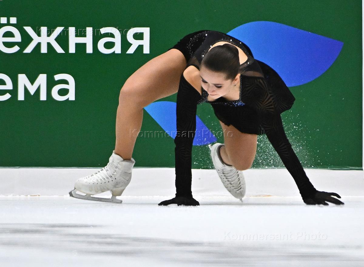 Третий этап Гран-при по фигурному катанию во Дворце спорта. Фигуристка Камила Валиева во время выступления с произвольной программой в женском одиночном катании.