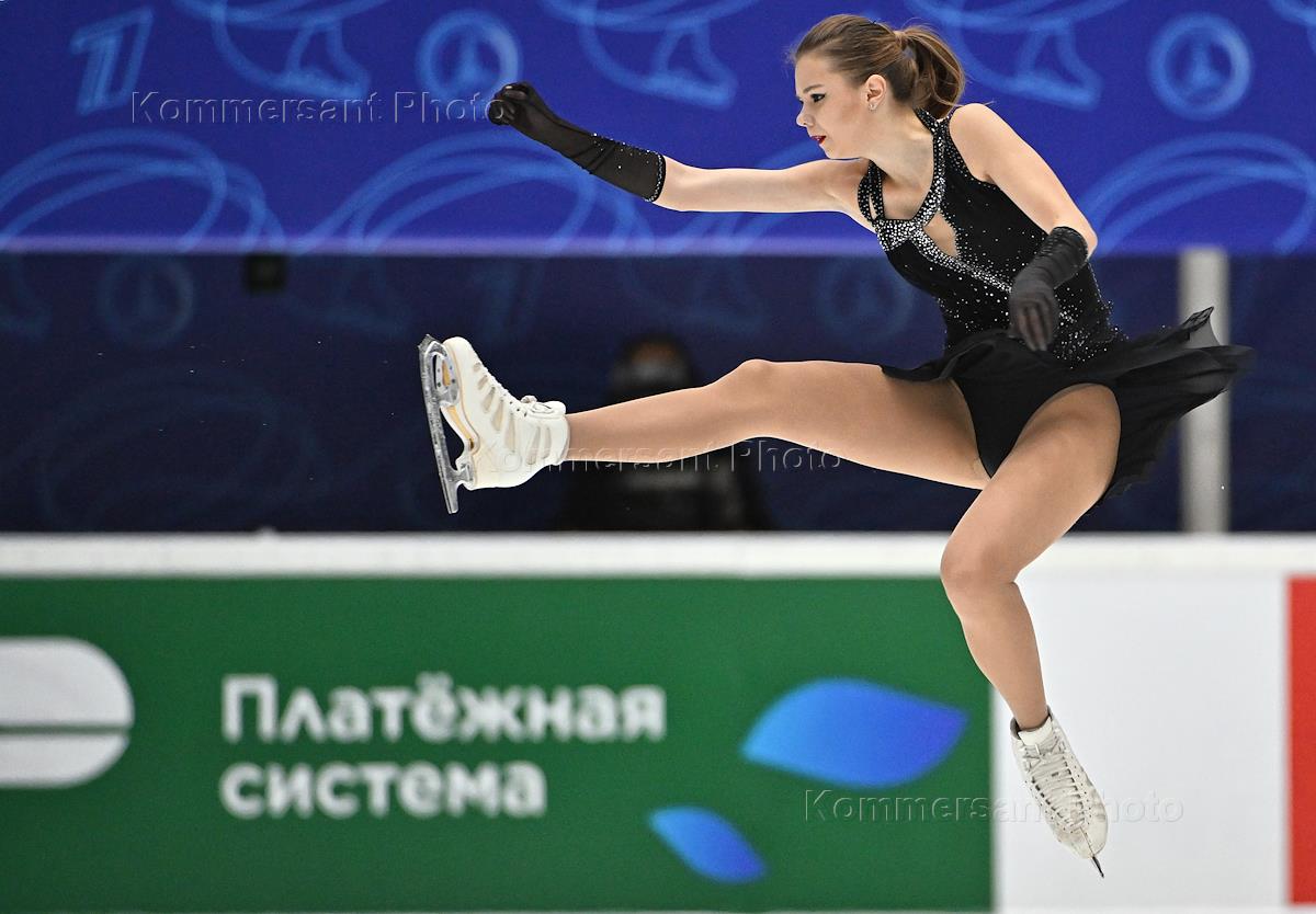 Третий этап Гран-при по фигурному катанию во Дворце спорта. Фигуристка Виктория Сафонова во время выступления с произвольной программой в женском одиночном катании.