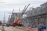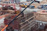 Возведение первого и второго энергоблоков Курской АЭС-2. Жанровая фотография. Территория строительной площадки.