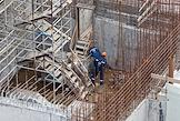 Возведение первого и второго энергоблоков Курской АЭС-2. Жанровая фотография. Рабочие на строительной площадке.