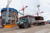Возведение первого и второго энергоблоков Курской АЭС-2. Жанровая фотография. Спецтехника на строительной площадке.
