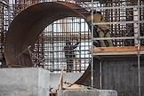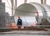 Возведение первого и второго энергоблоков Курской АЭС-2. Жанровая фотография. Рабочие во время монтажных работ.