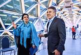Церемония открытия историко-познавательного комплекса "Галерея звезд отечественного телерадиовещания", посвященная 55-летию Останкинской телебашни, прошла в Останкинской телебашне. Генеральный директор телеканала "Звезда" Алексей Пиманов (справа) и телеведущая Екатерина Стриженова (слева) на церемонии.