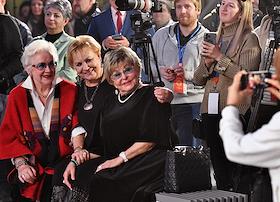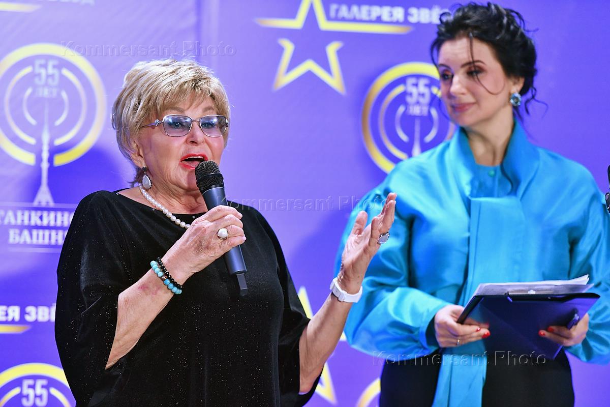 Церемония открытия историко-познавательного комплекса "Галерея звезд отечественного телерадиовещания", посвященная 55-летию Останкинской телебашни, прошла в Останкинской телебашне. Телеведущая Анна Шатилова (вторая справа) во время церемонии.