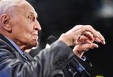 Церемония открытия историко-познавательного комплекса "Галерея звезд отечественного телерадиовещания", посвященная 55-летию Останкинской телебашни, прошла в Останкинской телебашне. Председатель совета Фонда развития и поддержки клуба "Валдай" Андрей Быстрицкий (слева) во время церемонии.