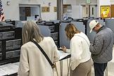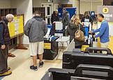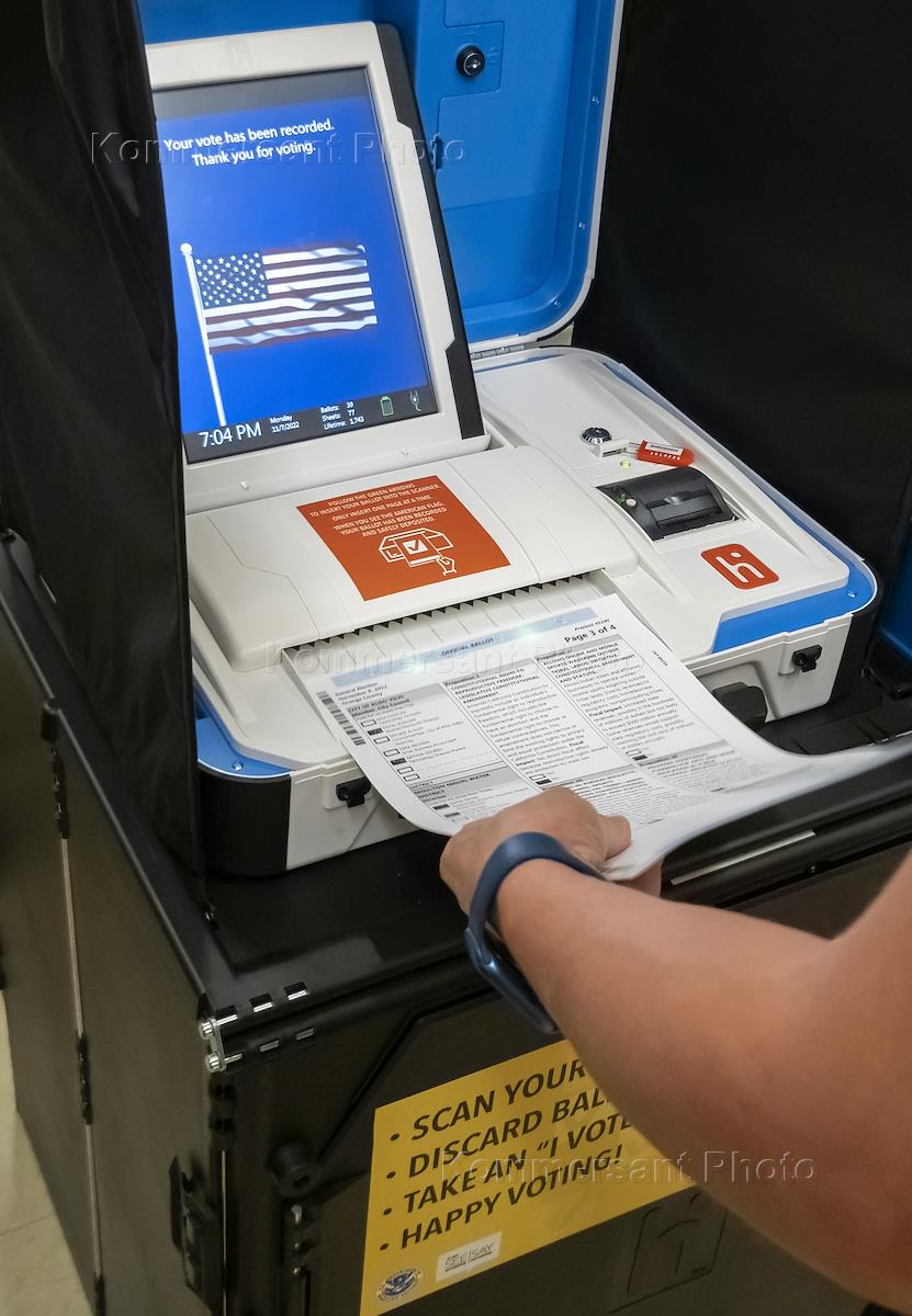 Выборы в Палату представителей Конгресса США. Избиратели сканируют заполненные бюллетени под наблюдением членов избирательной комиссии.