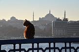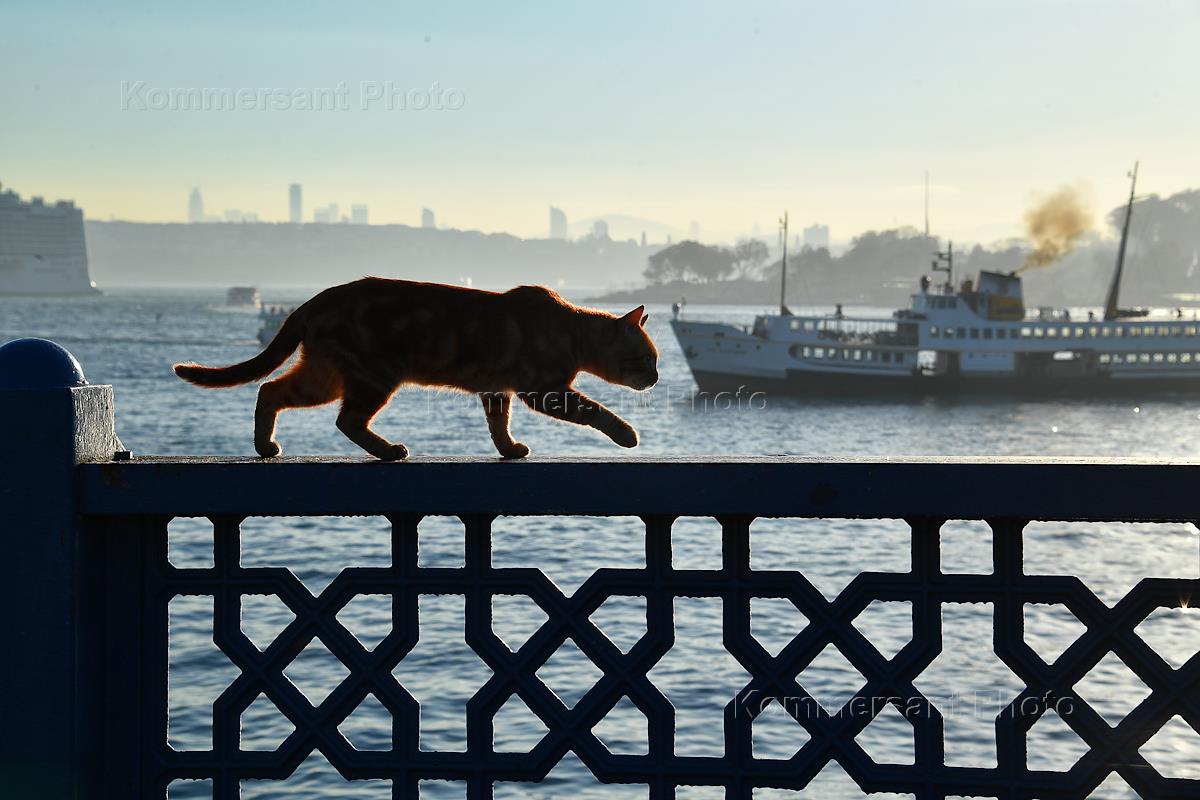 Виды Стамбула. Жанровая фотография. Кот на чугунной решетке ограждения набережной.