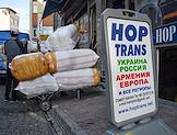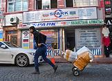 Виды Стамбула. Жанровая фотография. Мешки на тележке у транспортной компании Hop Trans.