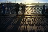 Виды Стамбула. Жанровая фотография. Лучи солнца сквозь решетку ограждения набережной.