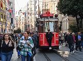Виды Стамбула. Жанровая фотография. Исторический стамбульский трамвай на улице Истикляль.