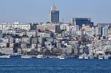 Виды Стамбула. Телевизионная башня Чамлыджа и грузовое судно Winning в море.