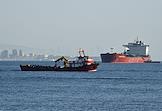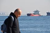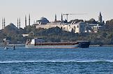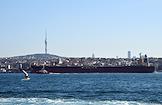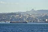 Виды Стамбула. Жанровая фотография. Грузовое судно в море.