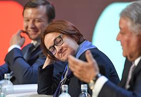 Форум инновационных финансовых технологий Finopolis прошел в международном выставочном центре (МВЦ) "Крокус Экспо". Пленарная дискуссия "Технологии будущего". Слева направо: заместитель мэра Москвы в Правительстве Москвы по вопросам экономической политики и имущественно-земельных отношений Владимир Ефимов, председатель Центрального Банка России Эльвира Набиуллина и директор Российского научного центра "Курчатовский институт" Михаил Ковальчук во время пленарной дискуссии.