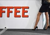 Форум инновационных финансовых технологий Finopolis прошел в международном выставочном центре (МВЦ) "Крокус Экспо". Жанровая фотография. Столики кафе.