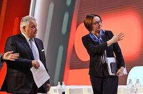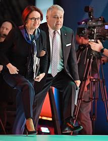 Форум инновационных финансовых технологий Finopolis прошел в международном выставочном центре (МВЦ) "Крокус Экспо". Пленарная дискуссия "Технологии будущего". Директор Российского научного центра "Курчатовский институт" Михаил Ковальчук (слева) и председатель Центрального Банка России Эльвира Набиуллина (справа) перед началом пленарной дискуссии.