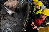 Работа завода по производству товарного картона для промышленности "Картонтоль". Жанровая фотография. Экскурсионная группа во время экскурсии по заводу.