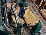 Работа завода по производству товарного картона для промышленности "Картонтоль". Жанровая фотография. Брикеты спрессованного картона.