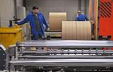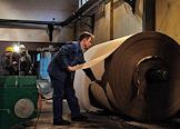 Работа завода по производству товарного картона для промышленности "Картонтоль". Жанровая фотография. Рабочий в производственном цехе.