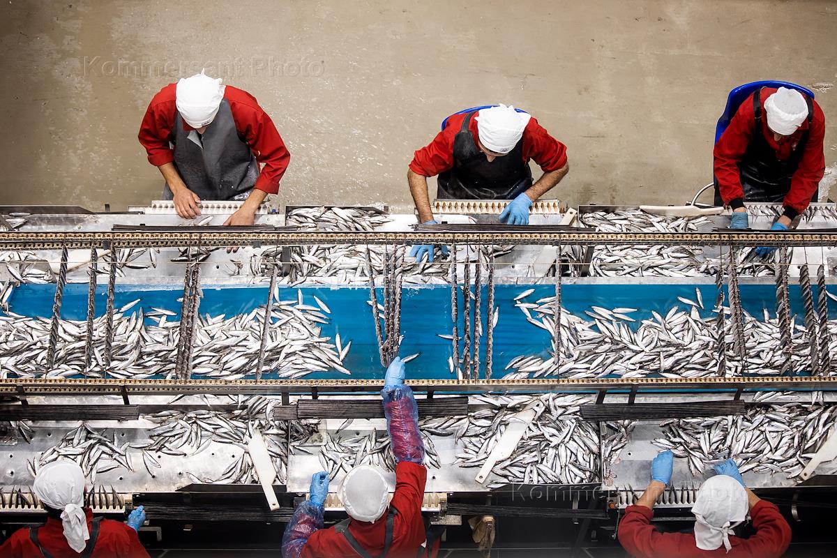 The work of the fish processing complex "For the Motherland". Genre photography.