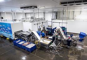 The work of the fish processing complex "For the Motherland". Genre photography. Employees of the enterprise during the sorting of fish.
