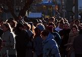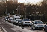 Ситуация у станции Московского метрополитена "Орехово" Замоскворецкой линии после закрытия участка "Орехово" - "Автозаводская". Пассажиры во время посадки на бесплатные автобусы, запущенные между закрытыми станциями.