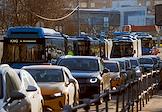 Ситуация у станции Московского метрополитена "Орехово" Замоскворецкой линии после закрытия участка "Орехово" - "Автозаводская". Сотрудник "Дорожного патруля" Центра организации дорожного движения (ЦОДД) во время регулировки дорожного движения на выделенной линии для бесплатных автобусов, запущенные между закрытыми станциями.