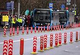 Ситуация у станции Московского метрополитена "Орехово" Замоскворецкой линии после закрытия участка "Орехово" - "Автозаводская". Выделенная линия для бесплатных автобусов, запущенных между закрытыми станциями.