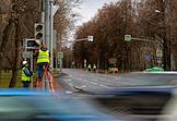 Ситуация у станции Московского метрополитена "Орехово" Замоскворецкой линии после закрытия участка "Орехово" - "Автозаводская". Сотрудники Центра организации дорожного движения (ЦОДД) во время настройки светофоров для обеспечения движения бесплатных автобусов, запущенных между закрытыми станциями.